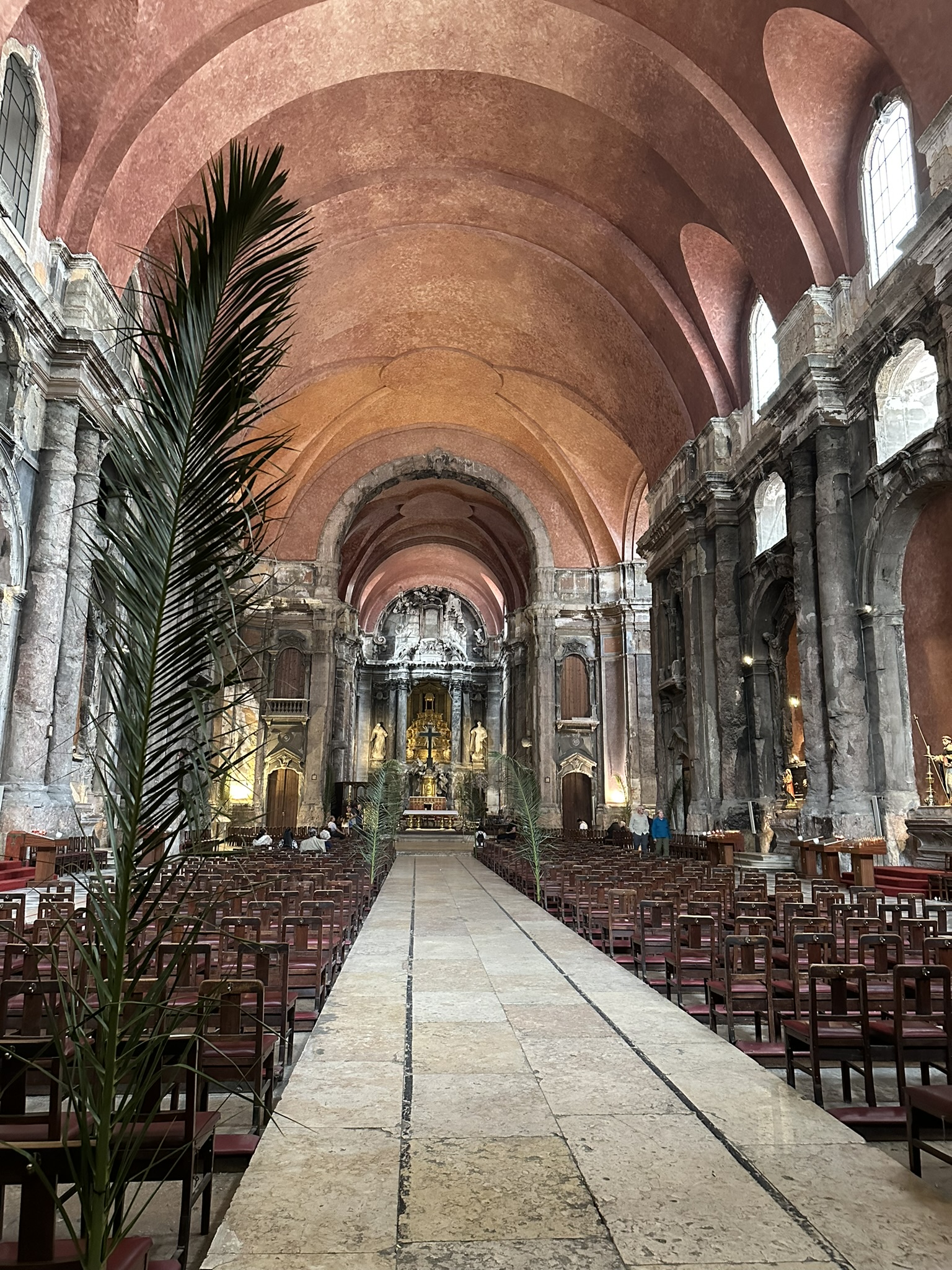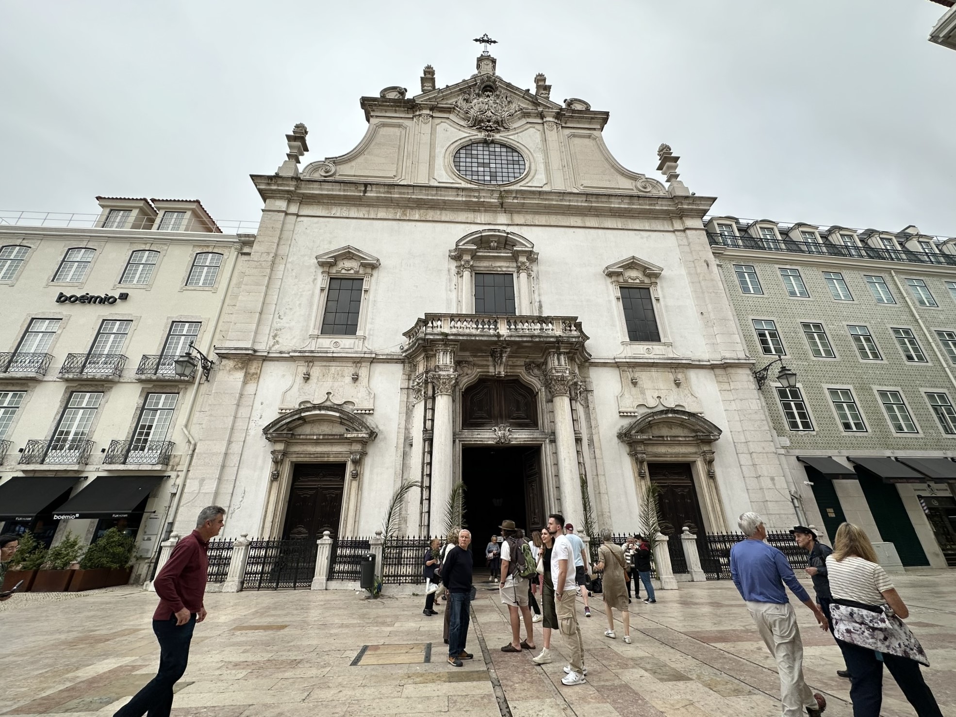 The Church. The square is named for the São Domingos church, the aforementioned church on your right. São Domingos is now a National Monument. It has been destroyed and rebuilt several times during its lifetime. Originally built in the 13th century and once host to royal weddings, it was first destroyed in the 1531 earthquake, it was rebuilt in 1536 only to be nearly destroyed again in the massive 1755 earthquake and fires which also destroyed much of Lisbon. The 1755 earthquake rumbled on All Saints Day and, as such, the parishioners were amassed to worship in candlelight, whose flames ignited the church fire sending terrified worshipers out into the streets to be met by the inundations of the tsunami which followed the earthquake and killed so many of Lisbon’s residents. After being, yet again, reconstructed, a fire in 1959 destroyed the interior decorations of the church: altars, engravings and valuable paintings, and when the church reopened in 1994 the reconstruction was done so as to not hide the scars of the fire. Today, in a visit to the church you can see the blood red marble walls and visit the statue of “Our Lady of Fatima”, the Virgin Mary with two of the children to whom she appeared in May of 1917, in the depths of World War I, at Fatima, Portugal with a hopeful promise of peace.