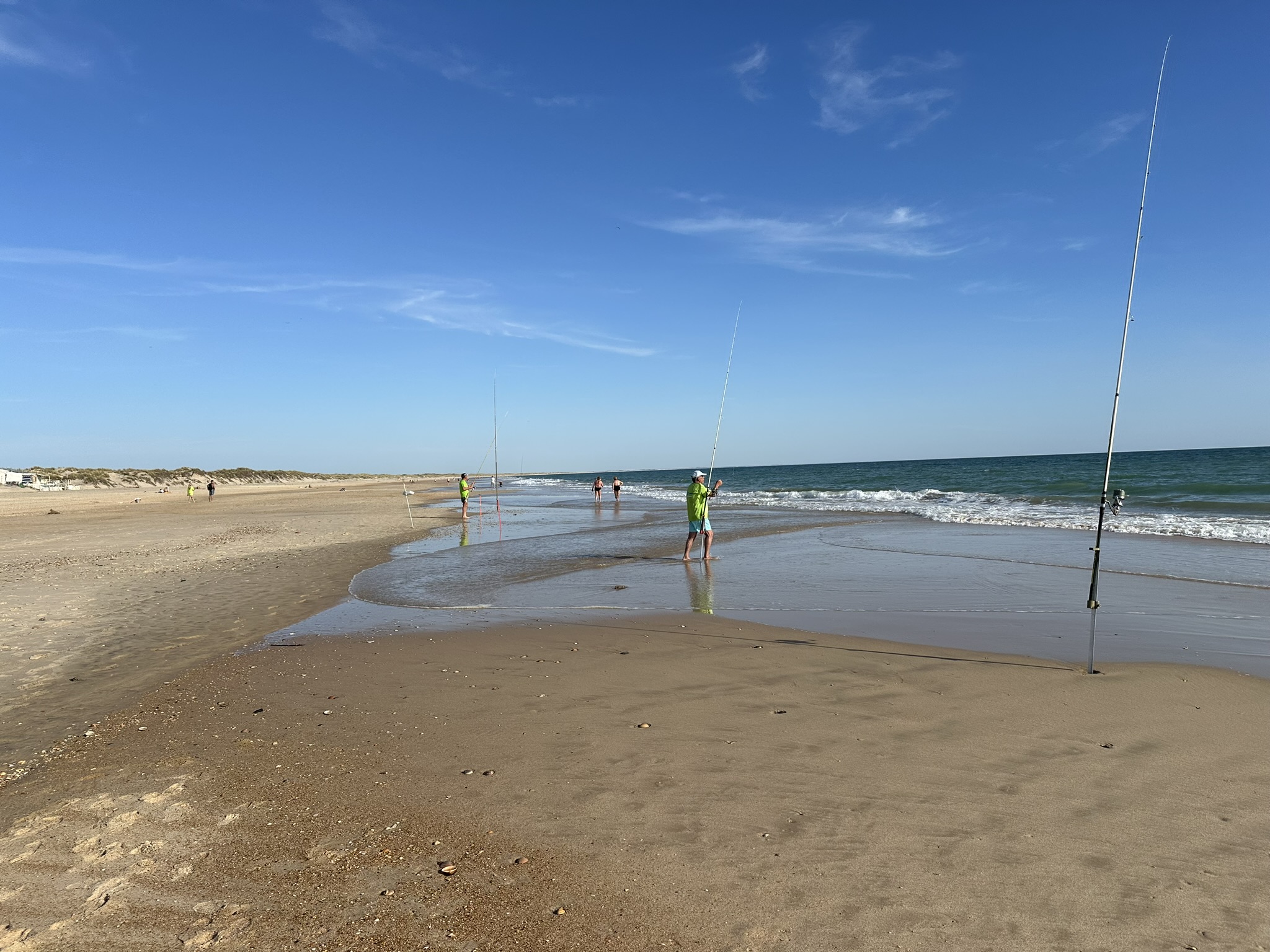 We began our stay in this southwestern most part of mainland Spain at Matascalañas Beach in a small beach cottage at the end of, and away from, all of the development. Families under colorful umbrellas punctuated the long sweeping view of beach on a brilliant cloudless Saturday. Fisherman dotted the coast with poles standing at attention in the early mornings and late afternoons into the evenings.