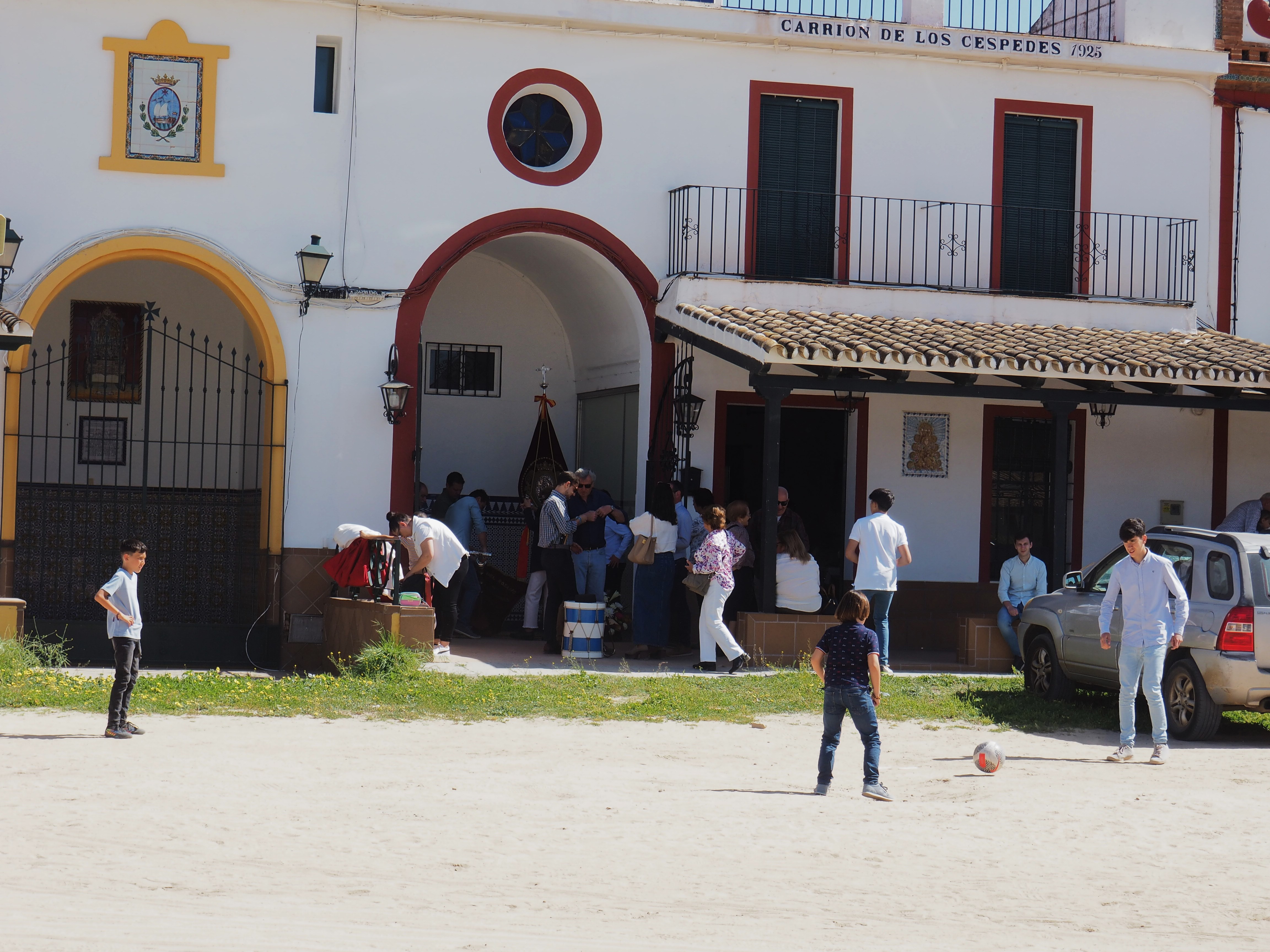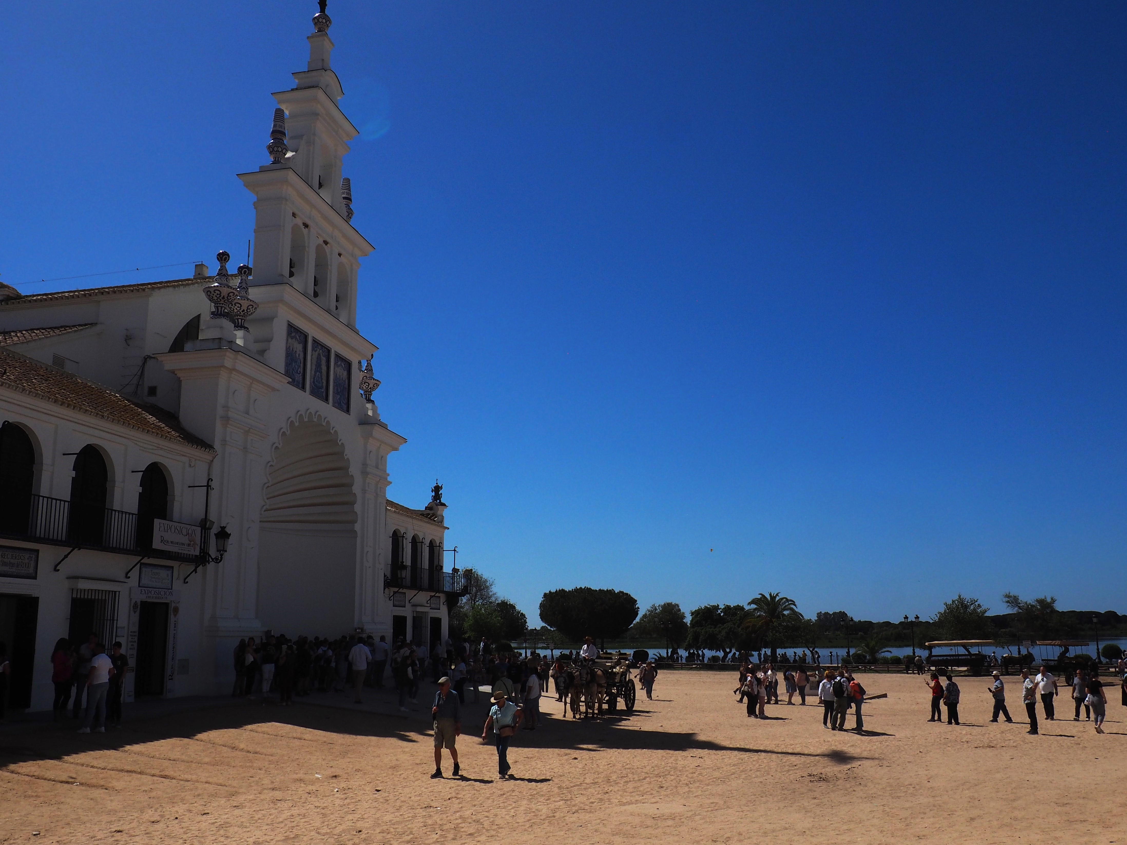 This time, with more time, we spent a couple of hours wandering its dirt roads among the houses of the Hermandades, or “brotherhoods”, of the communes of El Rocío. I wrote about these brotherhoods and their annual procession with the El Rocío Virgin Mary at Pentecost here.