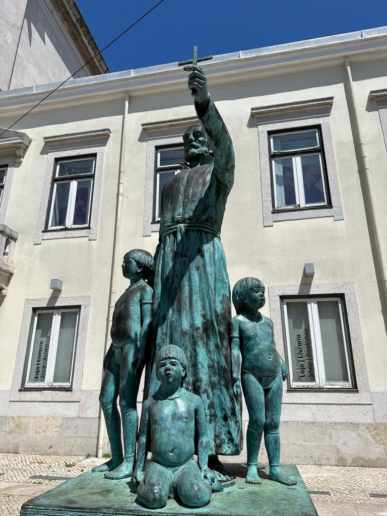 In front of the church, in Trinidade Coelho Square, stands a statue of António Vieira. Vieira was a Jesuit priest, missionary and tutor to the prince. He denounced the inquisition (or at least preached about tolerance towards the converted Jews: the “new Christians”. See more about Lisbon during that time period here) and slave-owning, forcing him to leave his missionary work in Brazil for Portugal. His anti-inquisition preaching and prophesizing the return of Saint John landed him in prison. His status is somewhat controversial. He has been condemned by some for his support for Portugal’s colonies, and being “selectively pro-slavery”. After the George Floyd protests went global in 2020, his status was defaced and covered with red paint.