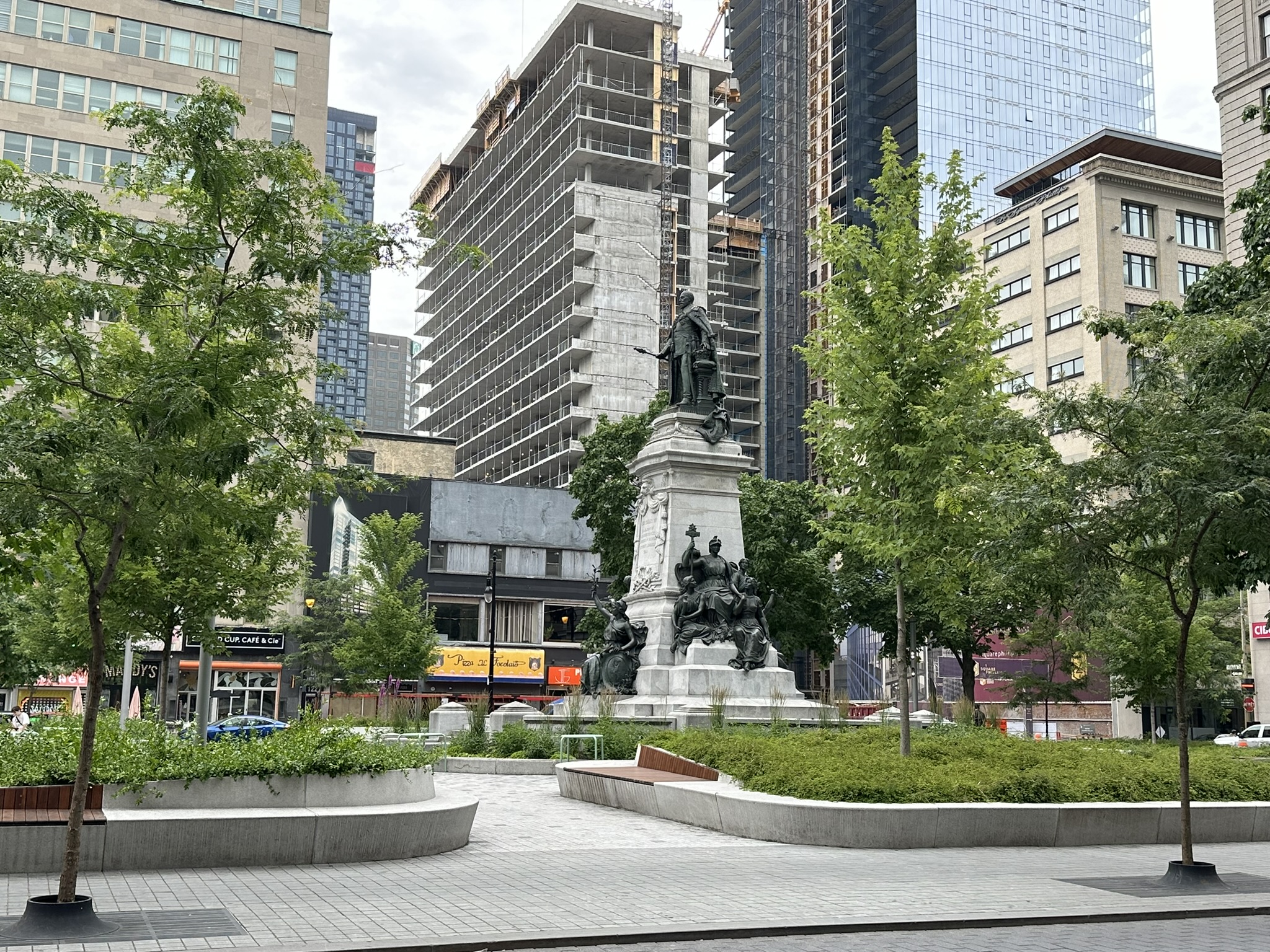 When we came to Canada on our brief honeymoon, we stayed right in old Montreal. We returned to Place Jacques-Cartier to relive our one day here a bit and enjoy some snacks at Maggie Oakes with its excellent service (at least by our waitress) and good people watching. We returned via Rue Rene Levesque, an urban but much superior route.