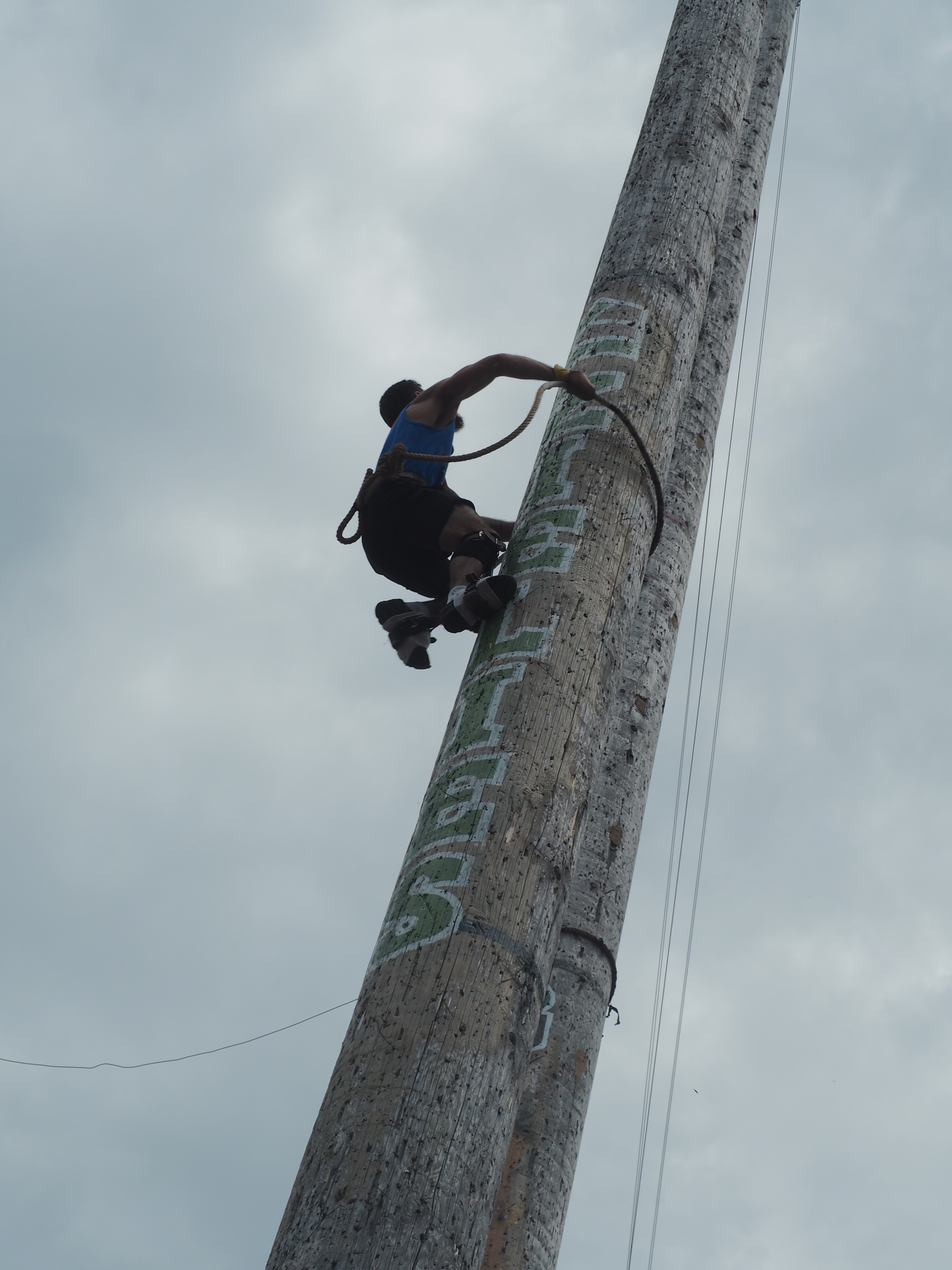“Competitors, you’re in the hands of the starter” each competition would begin in a New Zealand accented voice. Then the countdown to the chopping, sawing or climbing would commence. Some events are quick; in some cases, a mere 14 seconds to saw through a log or climb a 60-foot pole; some are longer; like the log rolling or the standing block chop (which, frankly, seems a good way to take a hunk out of your shin or lose a toe). We got to see almost all of the events in the preliminaries on a Thursday, save the boom-running race across rolling logs in the lake, taste delicious Bar-B-Que at one of the many food trucks (I missed my chance at Wisconsin cheese curds this trip, but you gotta leave something for next time) and grab a quick beer in downtown Hayward at the Moccasin Bar (and self-proclaimed “wildlife museum” of interesting taxidermy) before heading back southwest. These ladies and gents are athletes, people. Color me impressed.