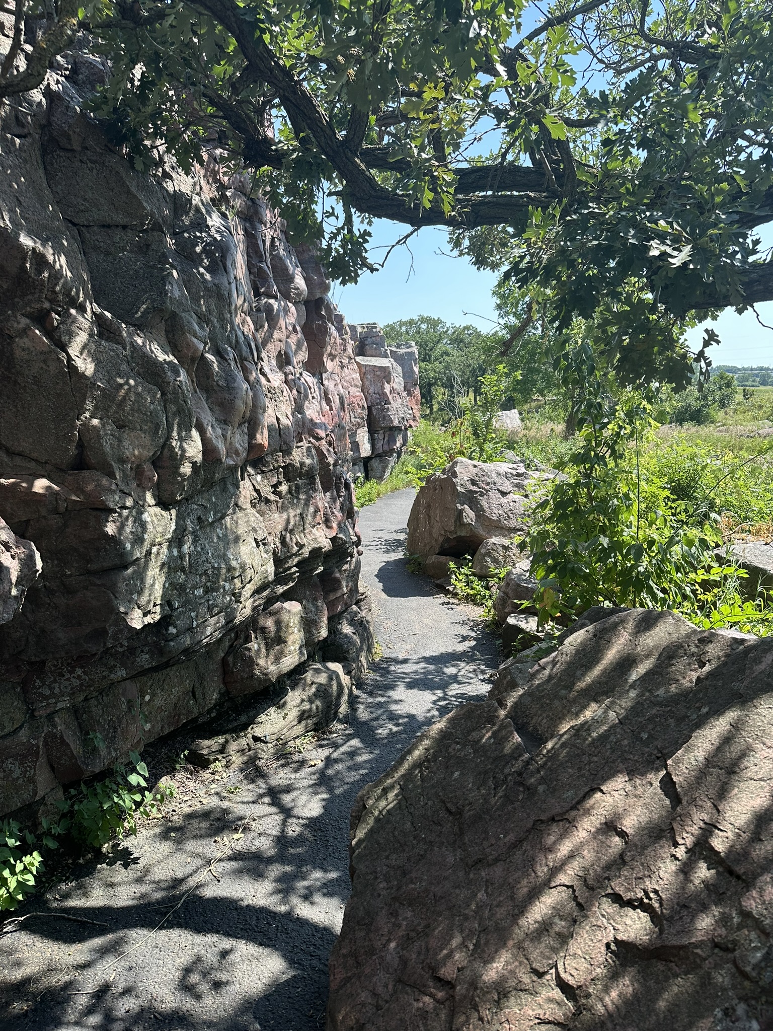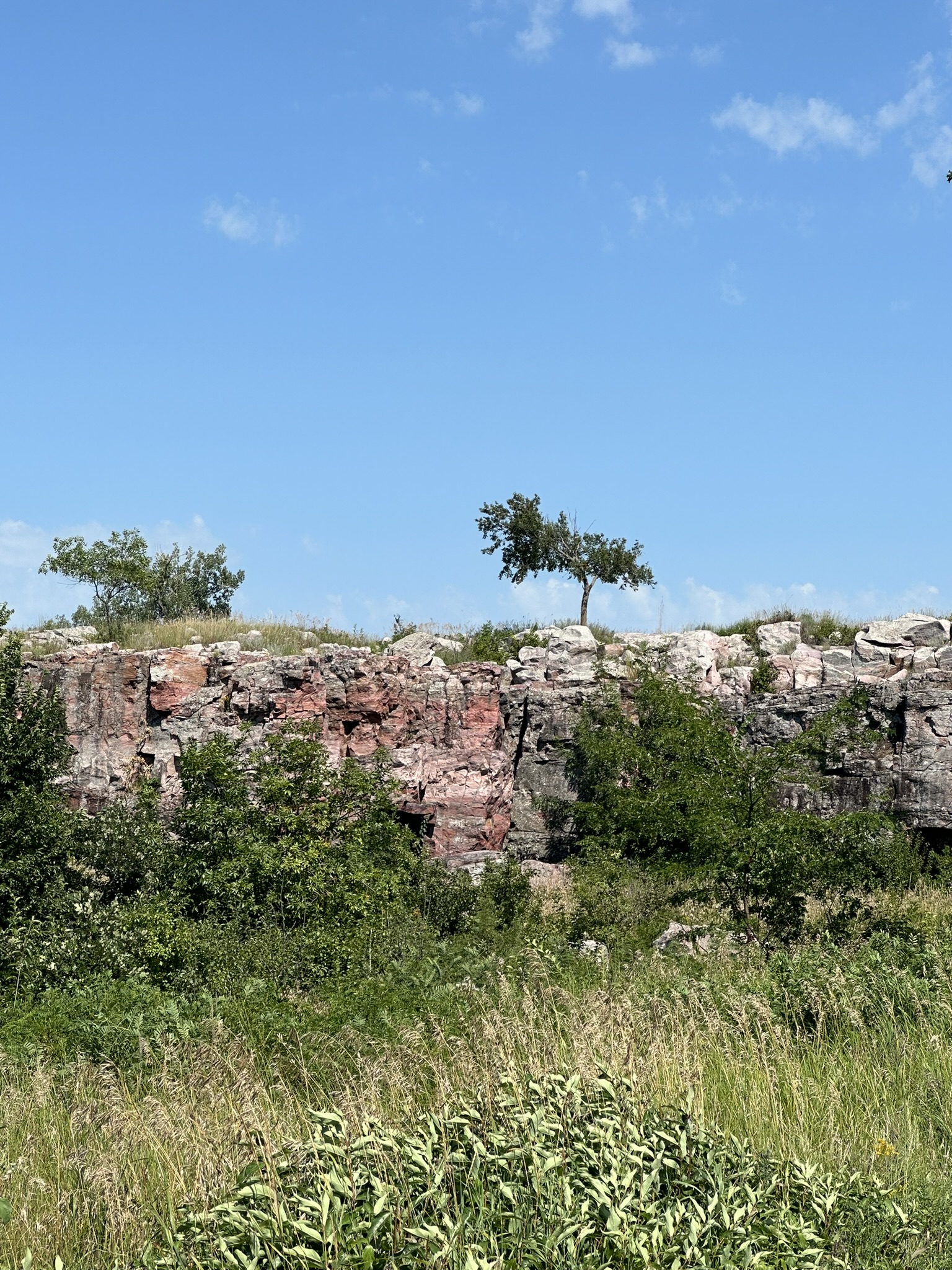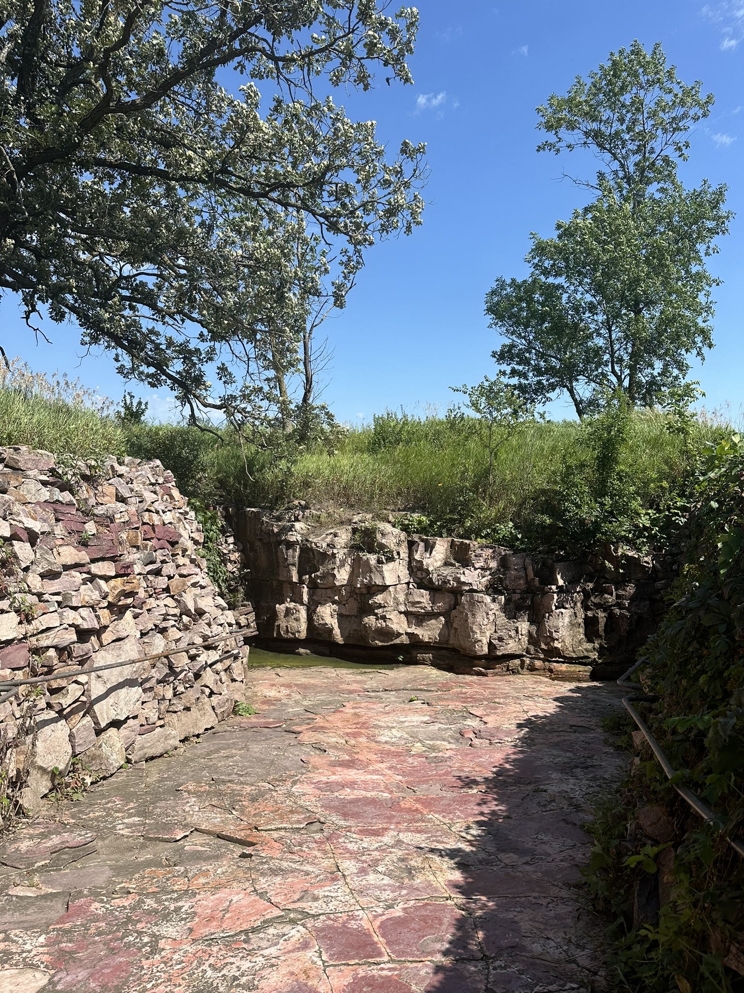 Pipestone National Monument. Just shy of the South Dakota border, is the National Park Service-run Pipestone Monument. For more than 3,000 years, indigenous people have quarried stone here to build pipes used in religious ceremonies and rituals. You walk out through the prairie, past a simulated quarry, to a red rock canyon-like area and, when it’s open (which it wasn’t) can follow a bridge across a river and waterfall to complete a 1-mile loop. We walked to the canyon area, but the mid-90s heat under bright hot sun drove us back to the air conditioning of our car rather than loop along the other side of the river to catch a glimpse of the falls. Its Free to visit.