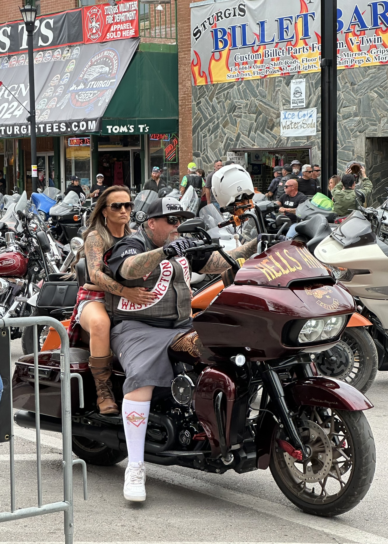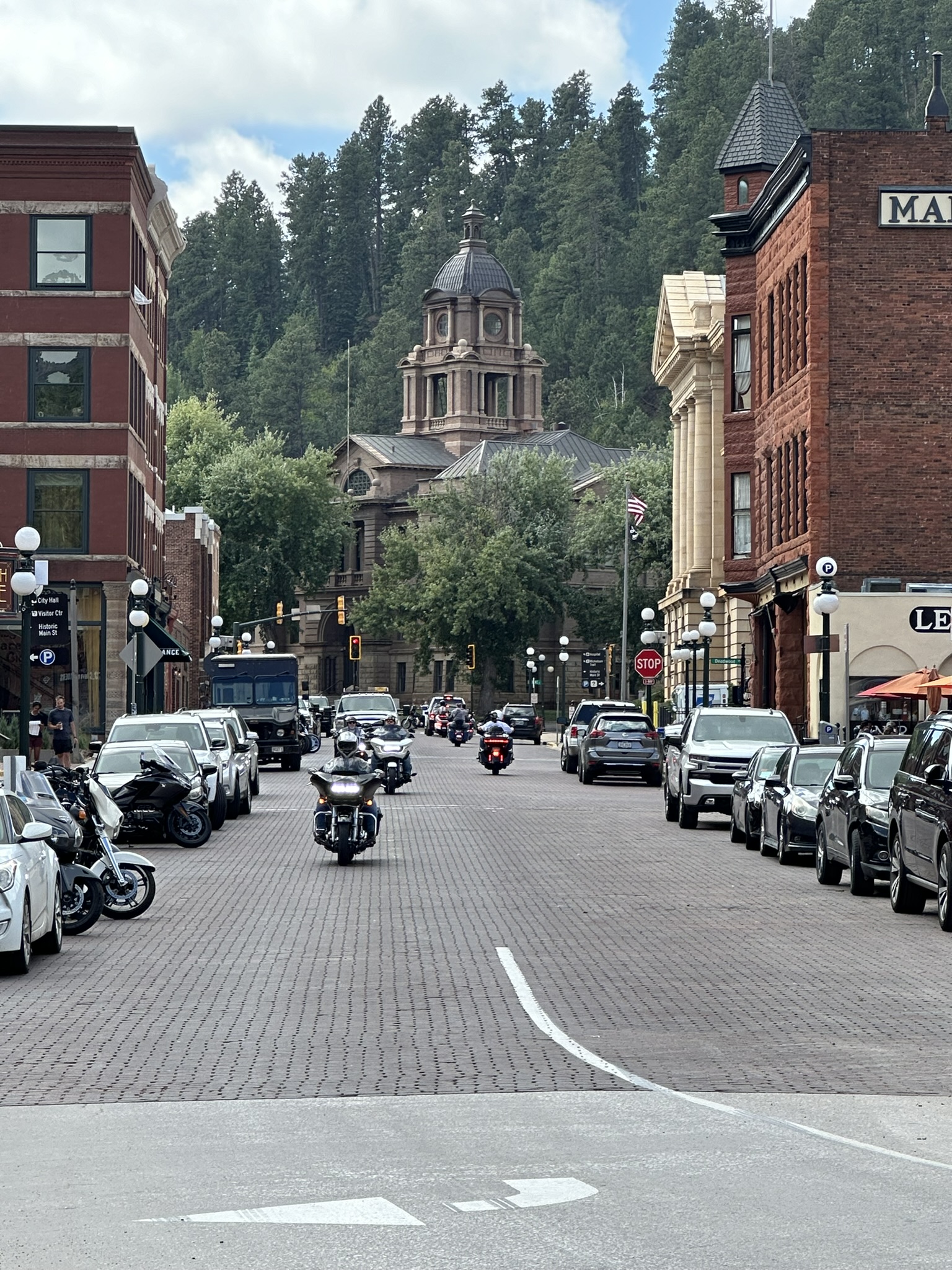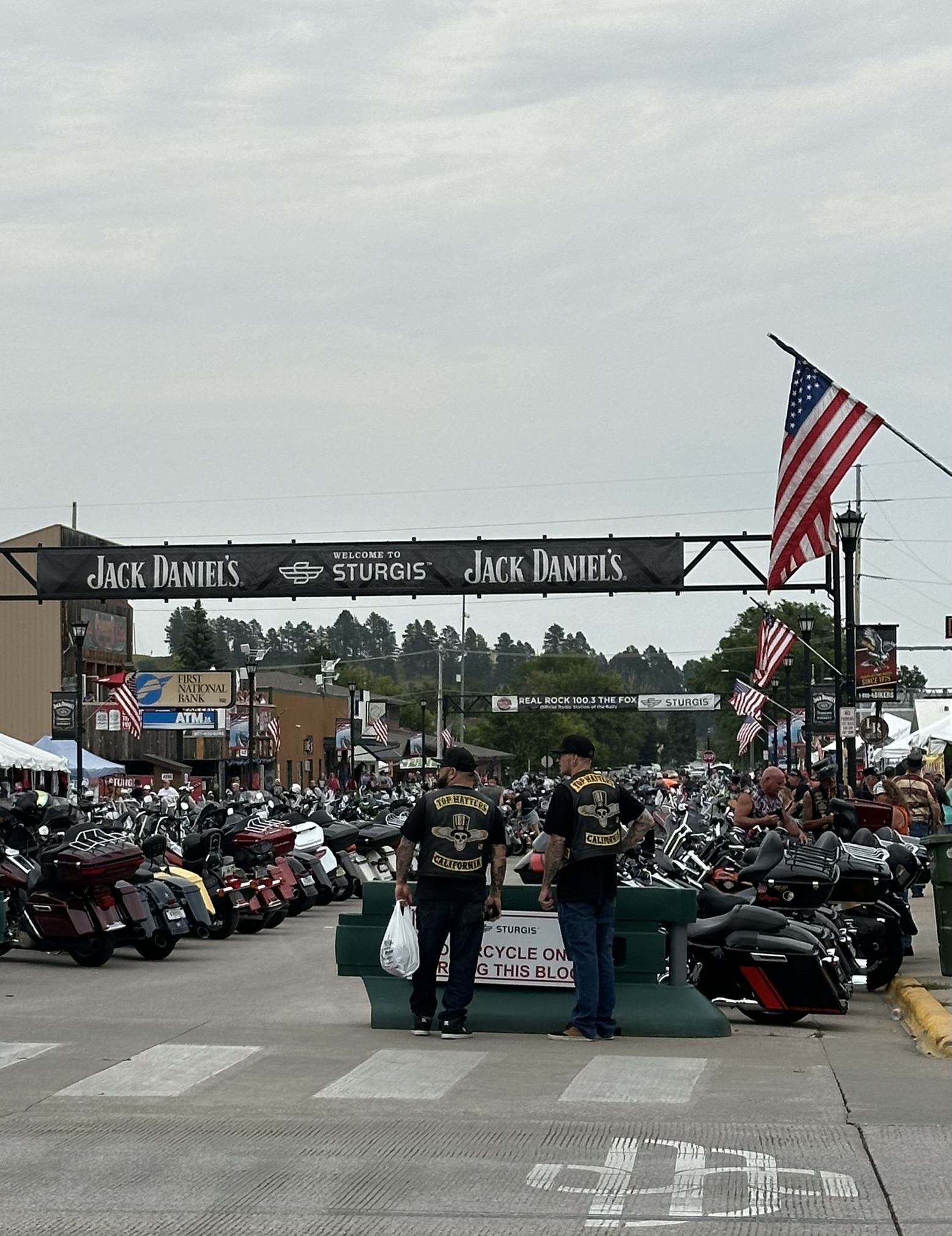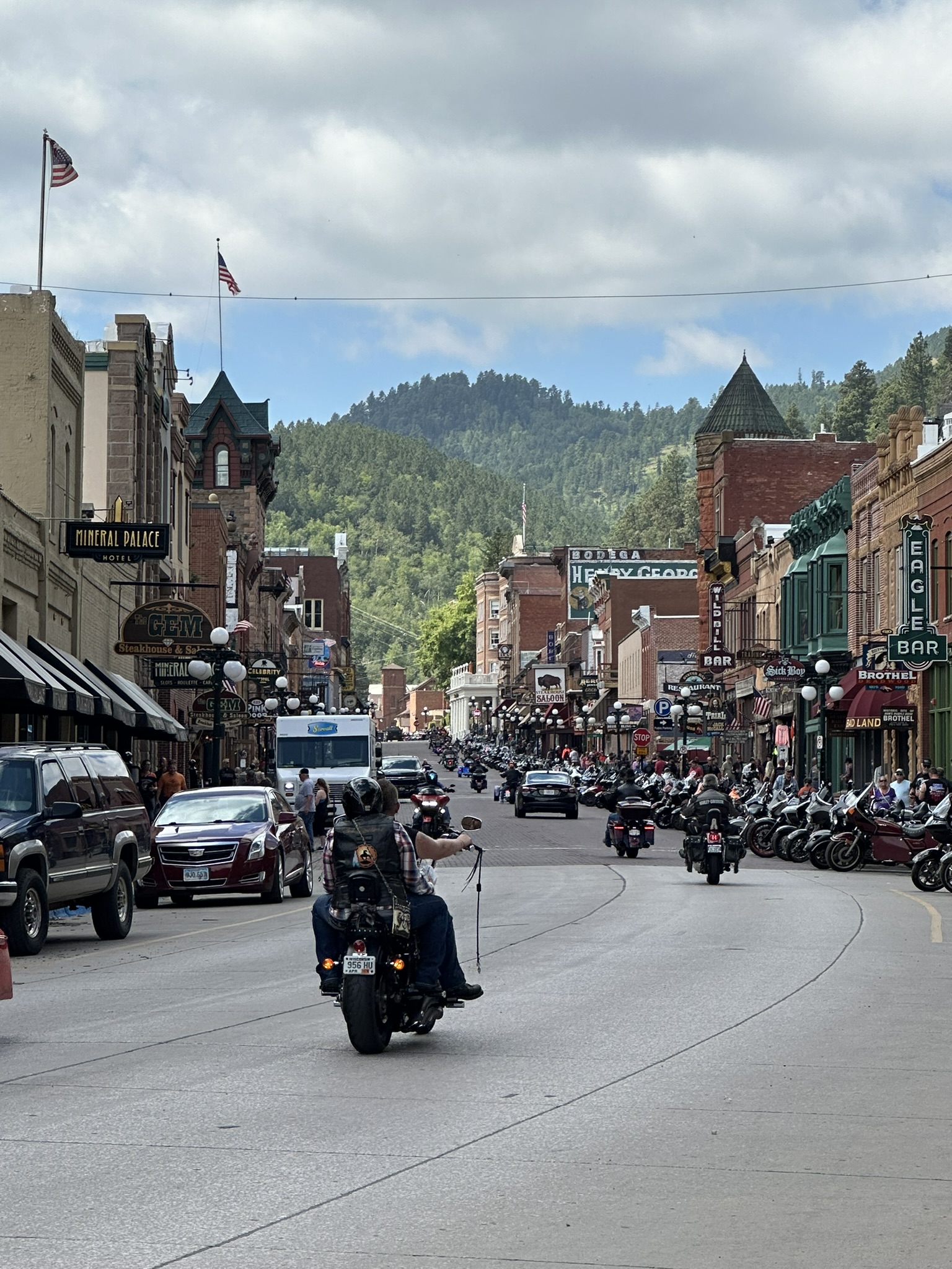 Sturgis. We happened to be in town during the 84th annual Sturgis Motorcycle Rally. If I’d thought I’d seen a lot of bikes on I-90 or in Badlands National Park, I was a fool. It is a somewhat indescribable spectacle. Another “mysterious elsewhere” of a more modern kind. The banner welcoming you to town says: “the ride, the roar, the rally”. The shirts read “Biker Barbie” or “Good girls go to heaven, Bad girls go to Sturgis”, bikini-clad bike washers were available to rinse off that road dust and sewing machines lurked on street corners ready to sew on Sturgis 2024 patches. And if you want a good lawyer, the roadside signs read: “what happens in Sturgis stays in Sturgis… if you have a good lawyer”. I have no clue where all these people stay in this small town (a biker later told us they stay in all the surrounding towns and fill the campgrounds for miles) and yet they come, annually.