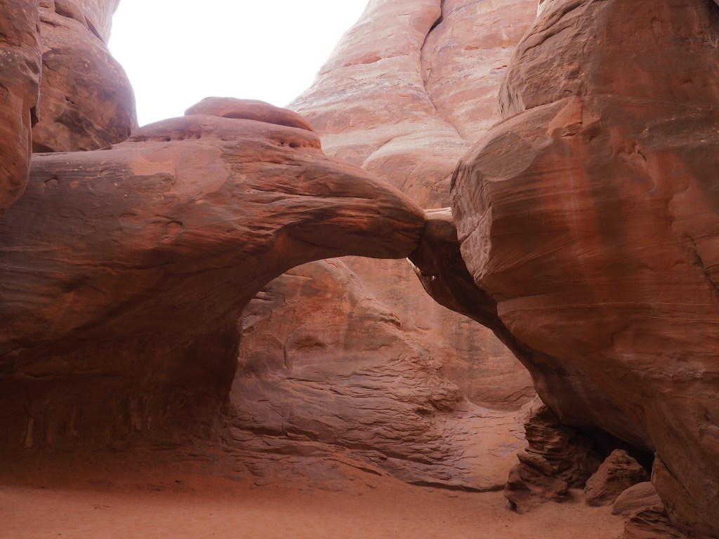 From popular Delicate Arch, we continued away from the entrance to Sand Dune and Broken Arch. On a late November day, we were nearly alone enjoying these two arches. The walk to get to them is considerably shorter and, in our opinion, they are not to be missed.
