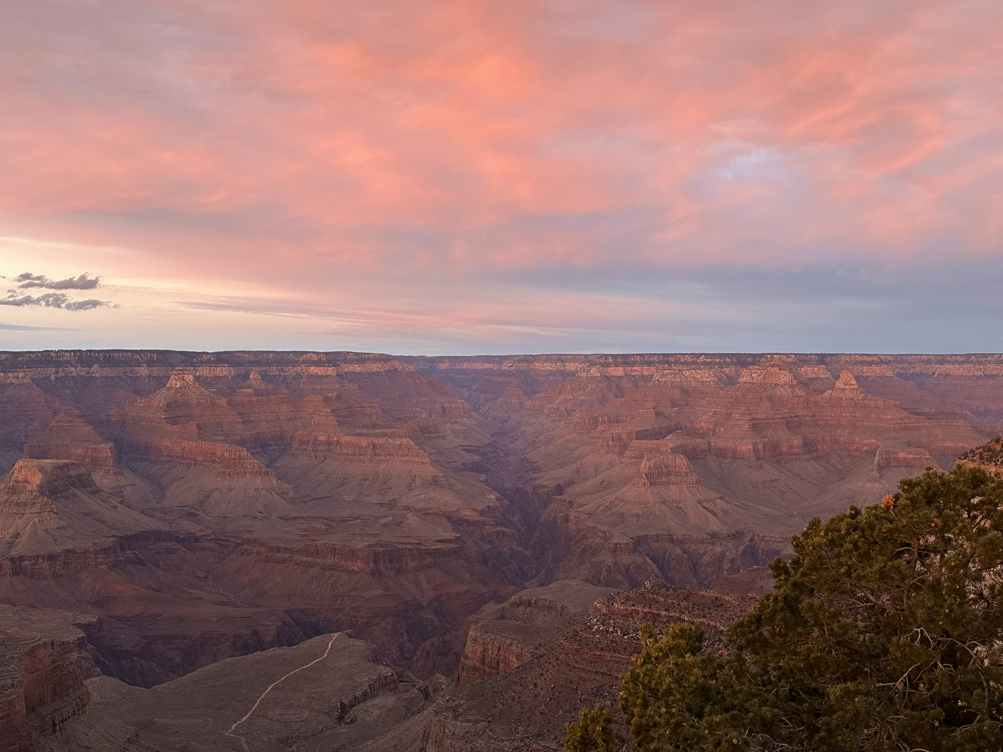 We spent our days from sunrise to sunset peering over the rim, watching the November light shift and cast its various tones against an ever-changing set of colors on the canyon backdrop, walking the Rim Trail and enjoying the beautiful common spaces of the hotel, smelling the scents of a roaring lobby fire, eating dinner in the grand old dining room and watching the chaos of Thanksgiving week unfold at the Grand Canyon, thankful for this life and all the amazing places we get to see.