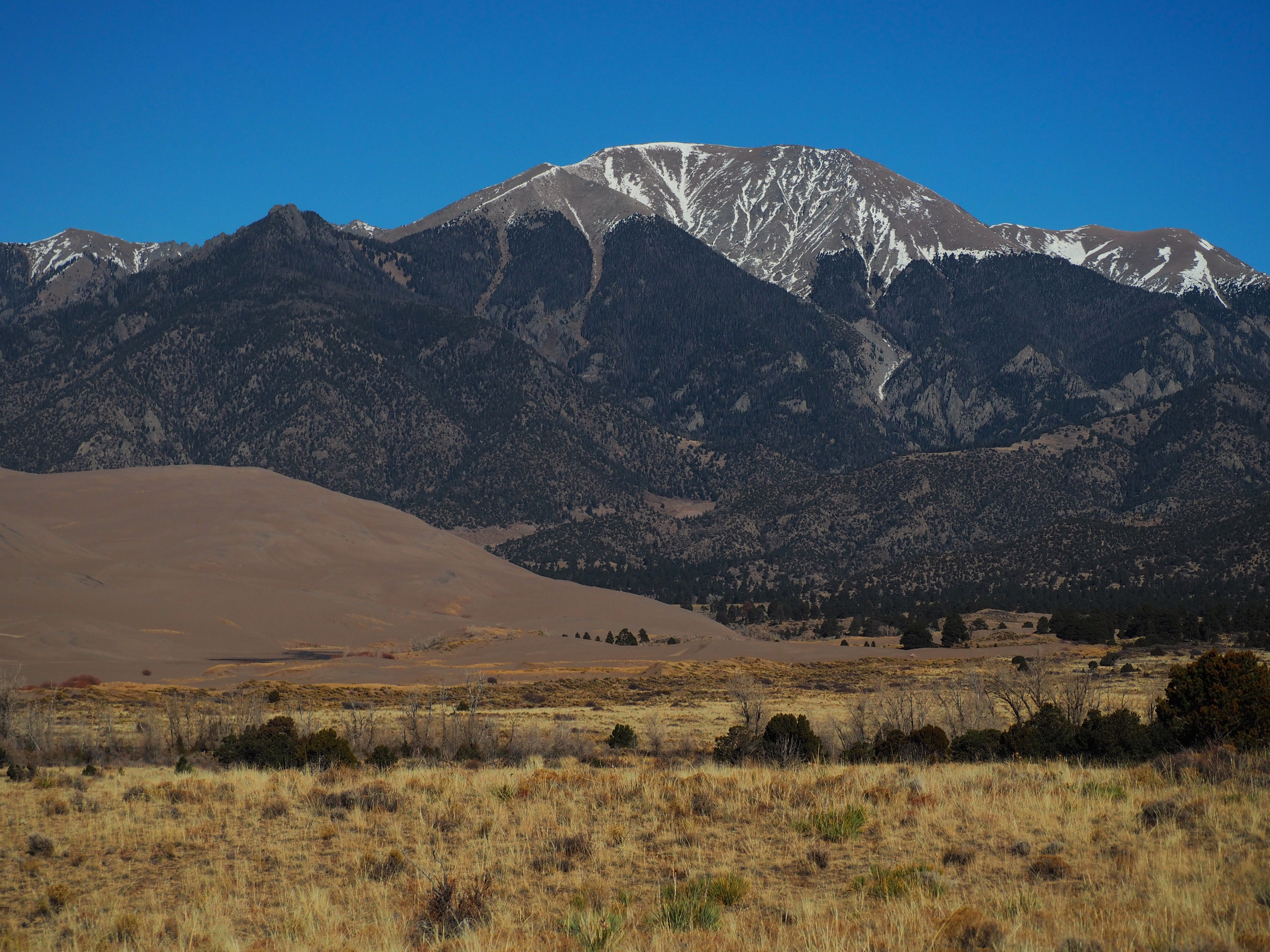 Hundreds of thousands of years ago, the Sangre de Cristo mountains were “uplifted” while the San Juan’s, to the west, were created by volcanic activity. This formed what is known today as the San Luis Valley. Relatively recently, scientists discovered that there was once a lake (now called Lake Alamosa) which drained away into the Rio Grande. When the lake drained away, the sand left behind was blown up against the Sangre de Cristos where the Mosca, Music and Medano passes form a little pocket where it collected.