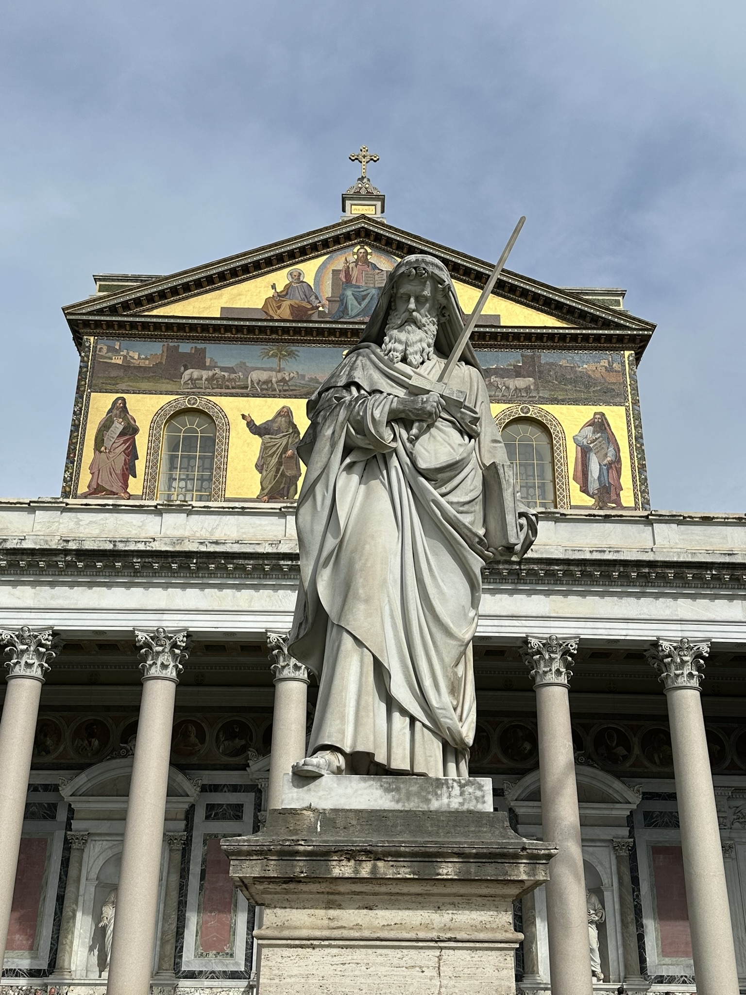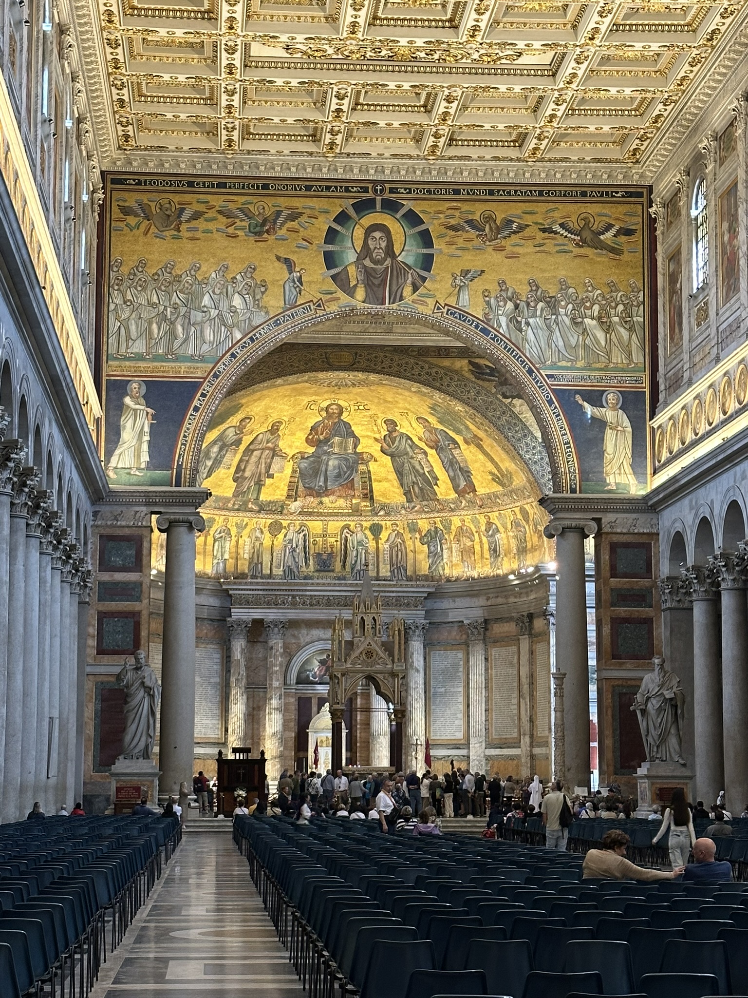 On the day of our visit, Catholic pilgrims flocked to the church and to the Tomb of Saint Paul, which Pope Benedict XVI announced had been carbon dated to confirm that the bones were from the 1st century, suggesting that the remains are, indeed Paul’s and then a service began with a beautiful singing of the Litany of the Saints (not being Catholic, we later learned that’s what this was as we recognized it watching the funeral for Pope Francis a few days later) in progression echoing throughout the church.