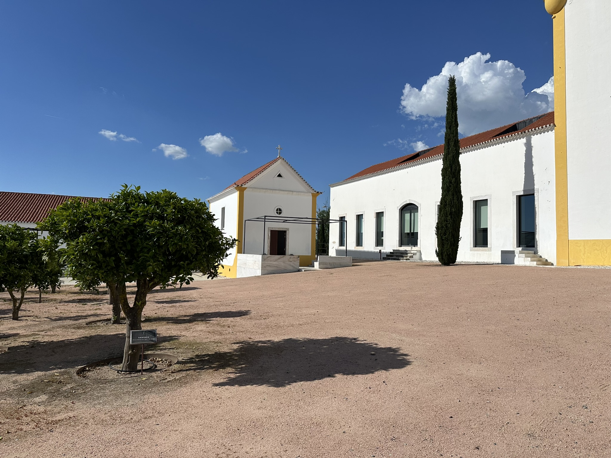 Casa do Governador, Évora. We stayed in November of 2025. It was rainy and cold, and we were the only guests mid-week in the off-season. Take that with a grain of salt, as you read our review. Once the home of the governor of Évora and a 19th-century infirmary and place of quarantine for the friars of the Convento do Espinheiro, the 28-acre property houses vineyards, pools, horse grounds and three buildings with lodging. It is (or was for us anyway), less expensive with fewer frills and is just outside of the city of Évora, if you want a more rural place from which to visit.