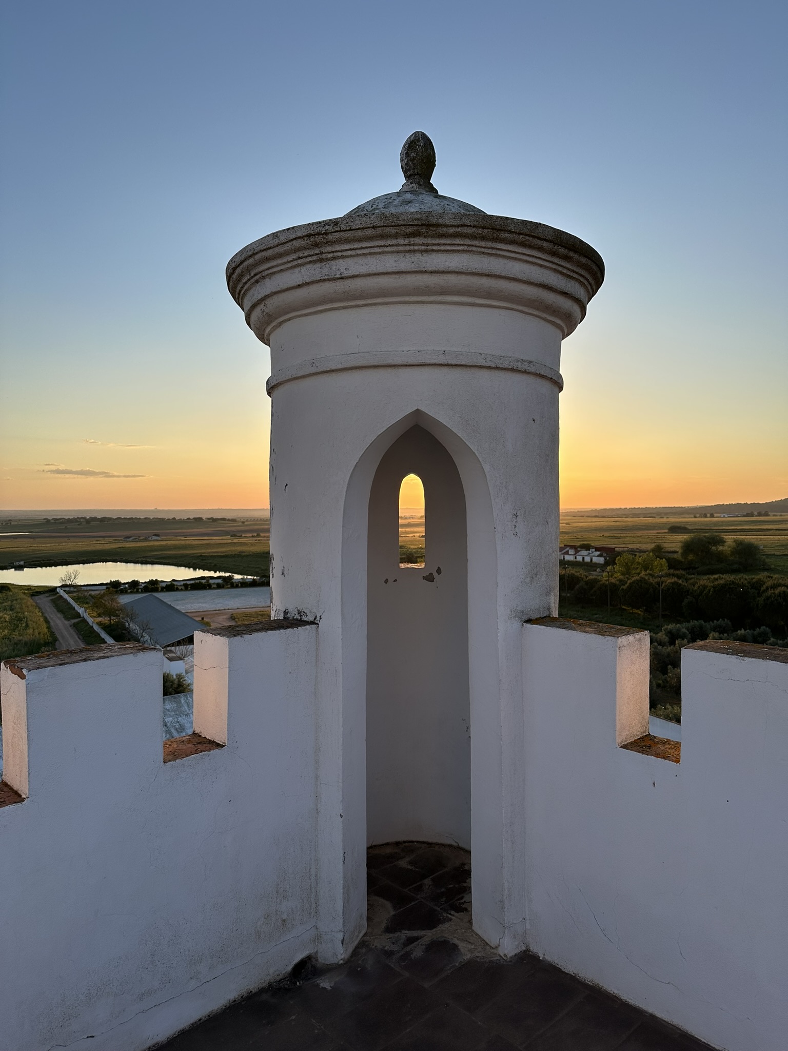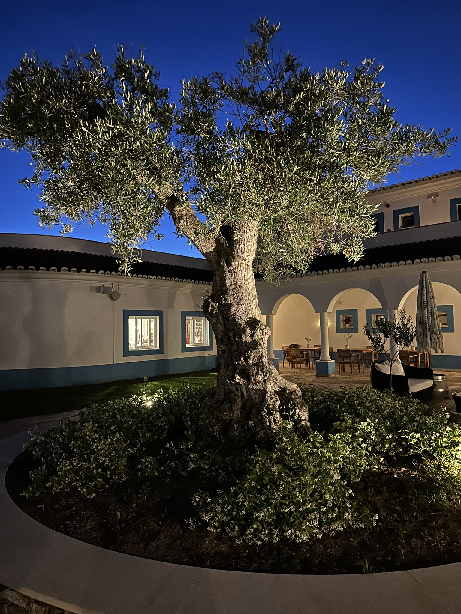 Torre de Palma, Elvas. Near Elvas and just outside of Monforte, Torre de Palma dates back to 1338, this hotel opened in 2014 after the property had been abandoned by its wealthy owners following Portugal’s 1974 carnation revolution (many of the wealthy Portuguese did the same when the dictatorship was overthrown). It is interestingly decorated with a modern art flair which doesn’t seem to match the vibe of the hacienda-like grounds however, the food and service is excellent and the grounds stunning. They offer a “welcome drink” nightly to watch the sunset from the tower whether you’ve just arrived or they are welcoming you back from a day exploring Alentejo or sitting by their pool. Plenty of available amenities too, which you can read about here. (It is also a Marriott property so you might be able to use Bonvoy points to stay).