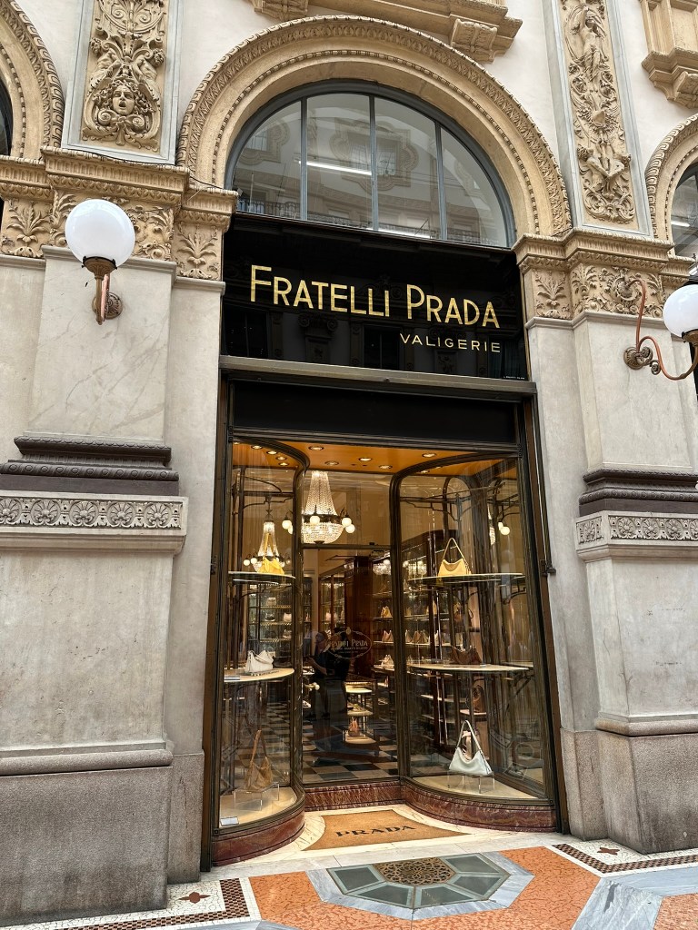 Galleria of Vittoria Emmanuel II. From the Duomo, we progressed under the arch off the piazza into the Galleria of Vittoria Emmanuel II (unified Italy’s first king). Initially built to house artisans of Milan, as the rents were raised and raised, most of them were pushed out to make way for higher end brands. Of the original artisans, only the original Prada store (obviously now also a high-end brand) location remains. In those days, Prada was more humble, just two brothers selling handmade bags from this shop.