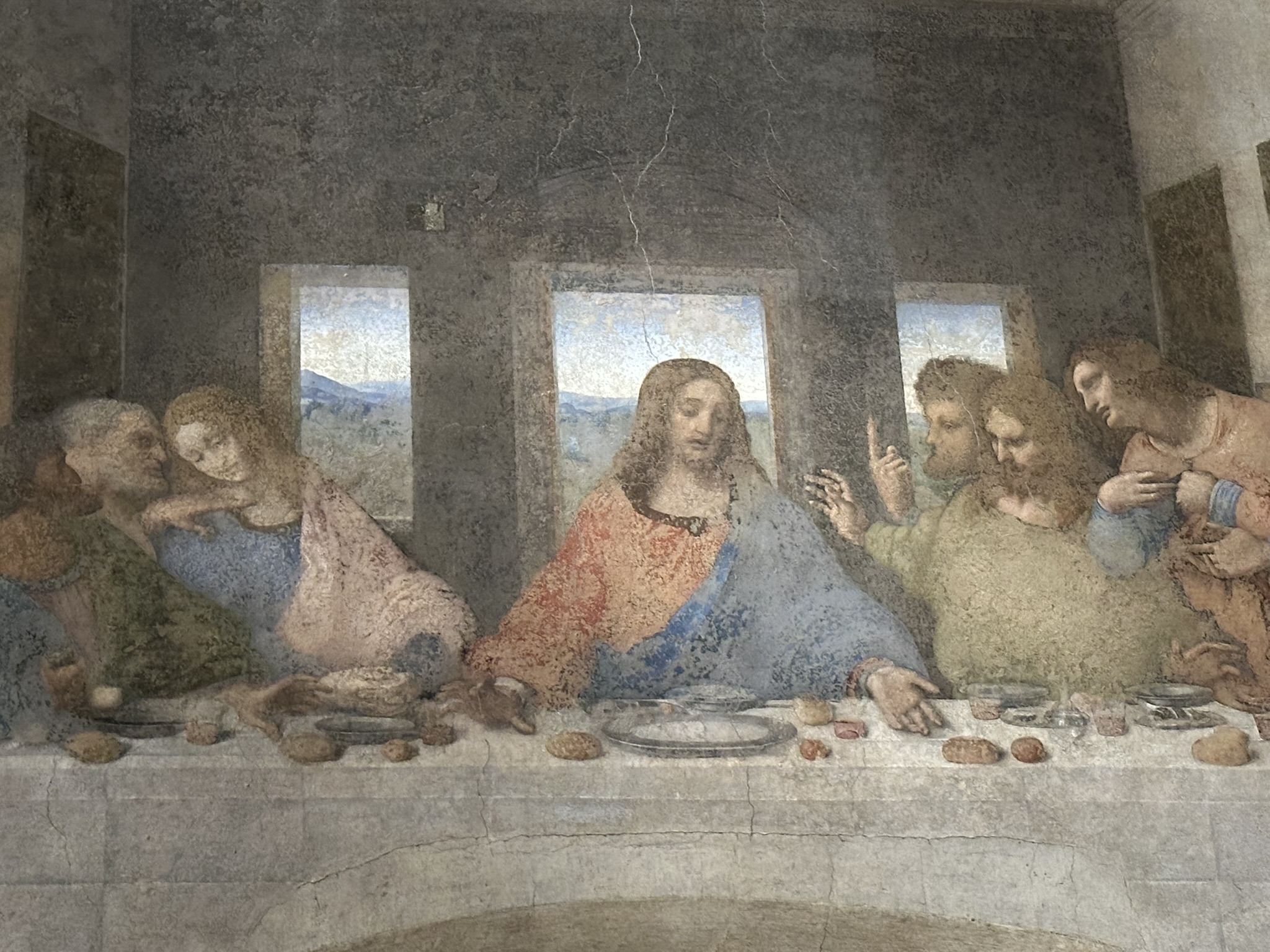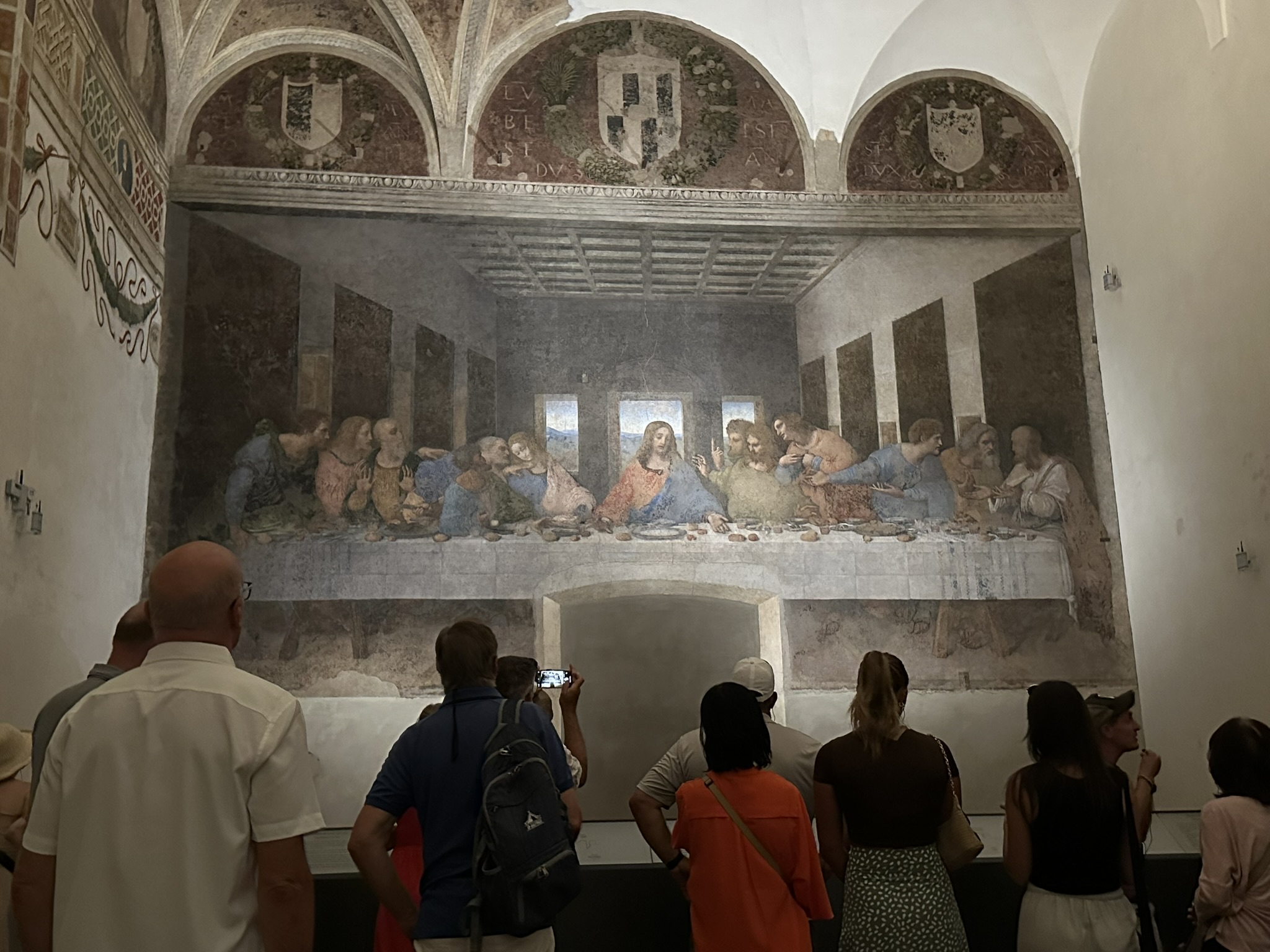 The Last Supper. It was because Duke Sforza asked Leonardo da Vinci to help decorate Sforza Castle, that da Vinci was here, in Milan. His Last Supper was absolutely the highlight of our touring in Milan. We visited it directly after visiting the Castle, replicating Leonardo’s commute as he worked on it for four years whilst also decorating the castle and building war machines for the Duke. It is not a fresco, though can be mistaken as such. Da Vinci was experimenting with a new painting technique using tempura and oil on gypsum when creating it (of course he was, he was Leonardo da Vinci).