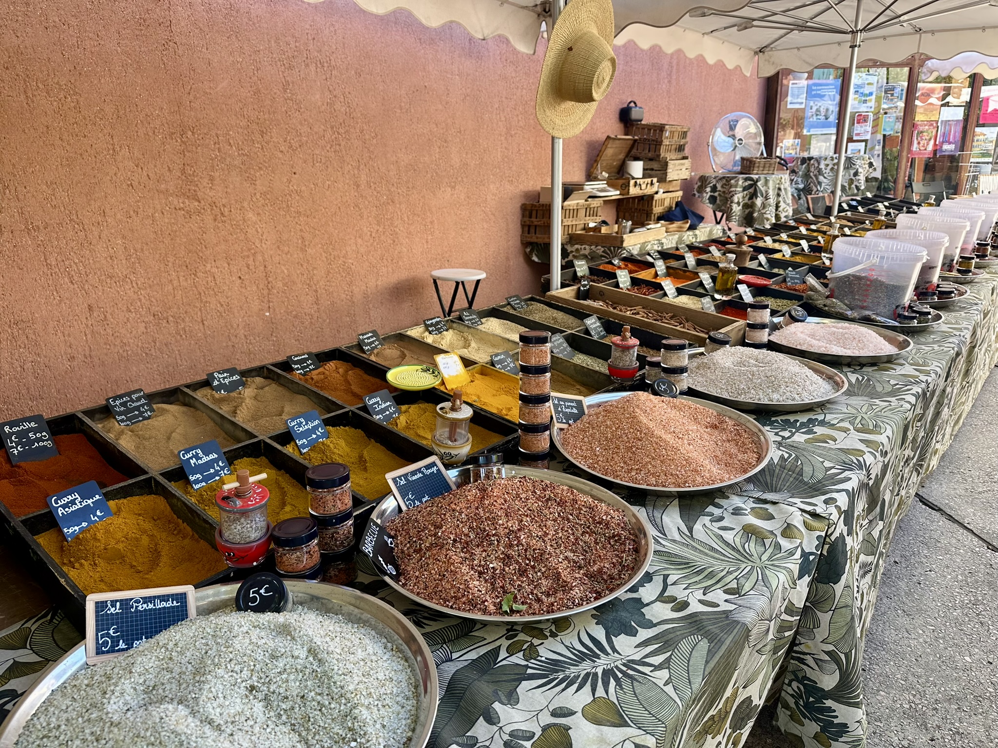 Favorite market. We’ve been to the huge one in Aix, the massive winding one snaking through L’Isle-sur-La-Sorgue, and a sweet smaller one in Bonnieux. We avoided the one in Gordes, which is already a busy town with some difficult parking situations on busy days. Our favorite was in Roussillon. It isn’t huge, but it’s sizable, parking (just out of town) is easy and you can visit the charming red village and its neighboring ochre cliffs easily all on a market day (Thursday).