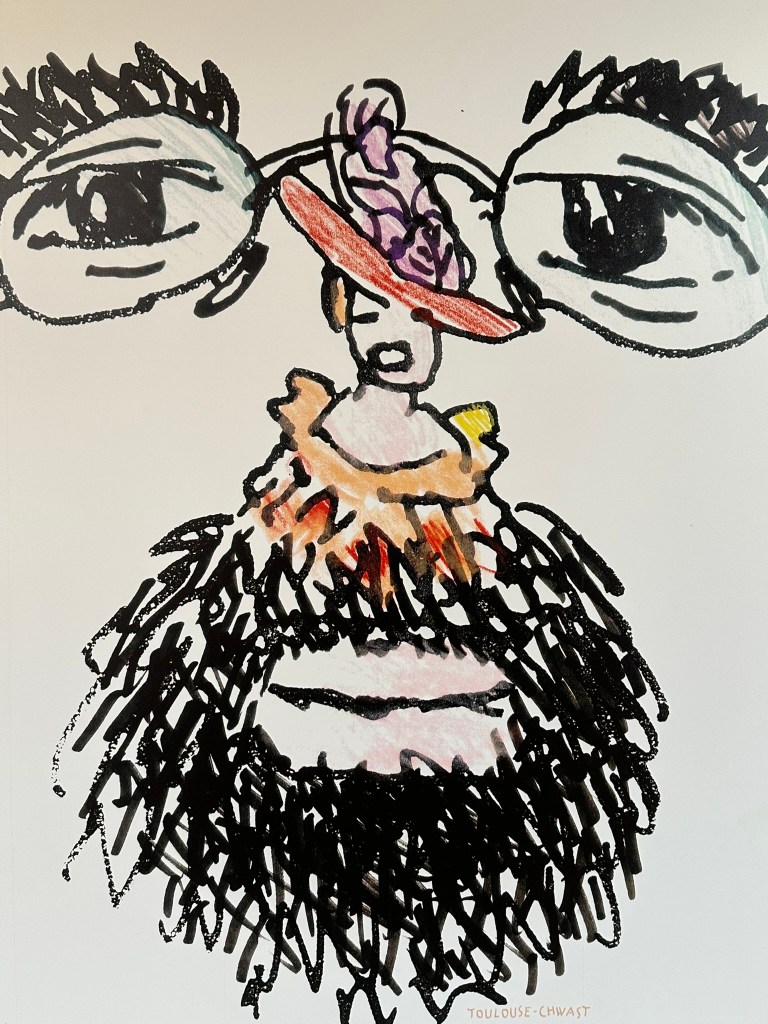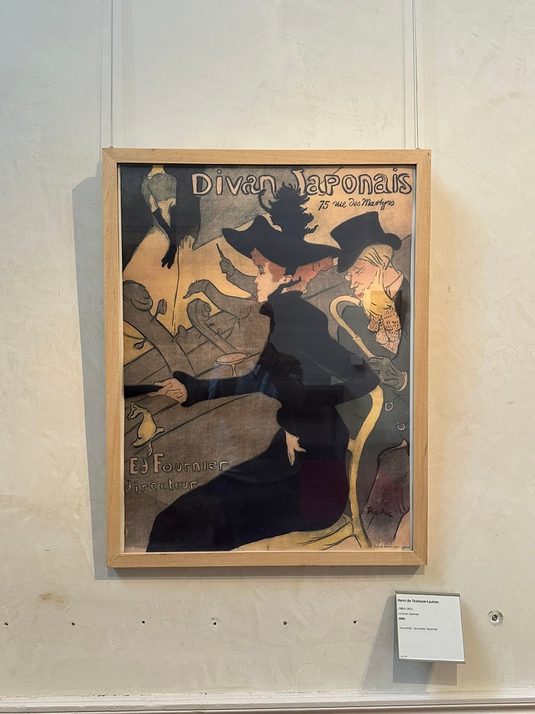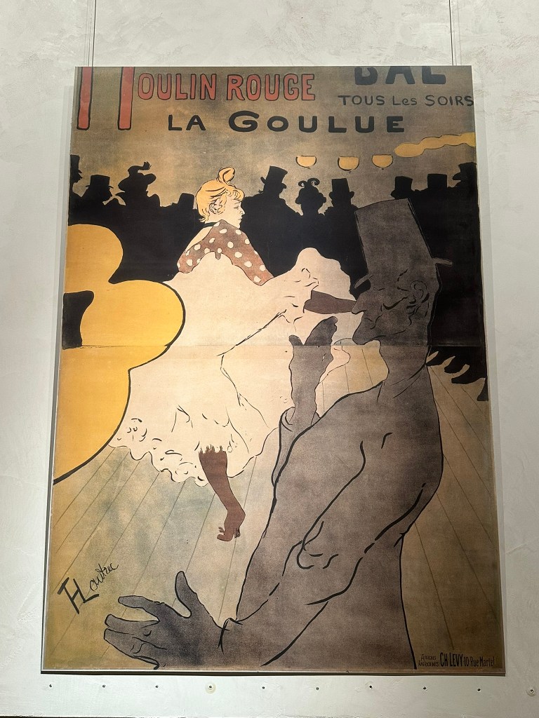 The Berbie Palace itself is part of the museum with its unique ceilings and floors enhancing and adding to the exhibit. We were first exposed to Henri Toulouse-Lautrec during our many annual October visits to the Art Institute of Chicago (in, of course, Chicago), while working full time, when we found his painting At the Moulin Rouge in their collection. The haunting face of Jane Avril staring out stuck with us, which is why we detoured here in the first place. The collection contains early portraits and sketches, several of his depictions of Paris prostitutes, many posters he made for the directors of the Moulin Rouge, pieces from the bishops’ collections and several posters made by various artists in 2001 to commemorate the 100th anniversary of Toulouse-Lautrec’s death.