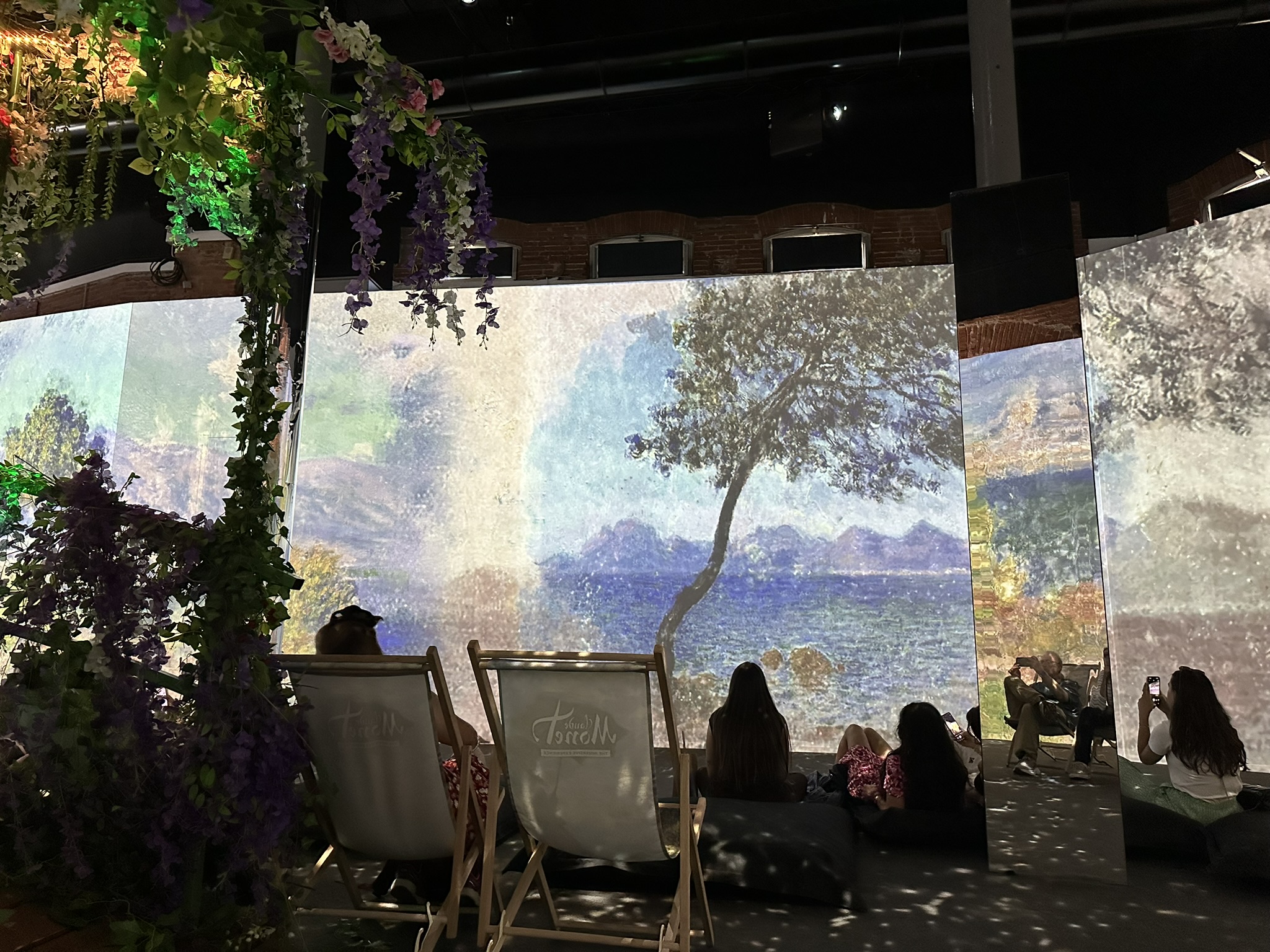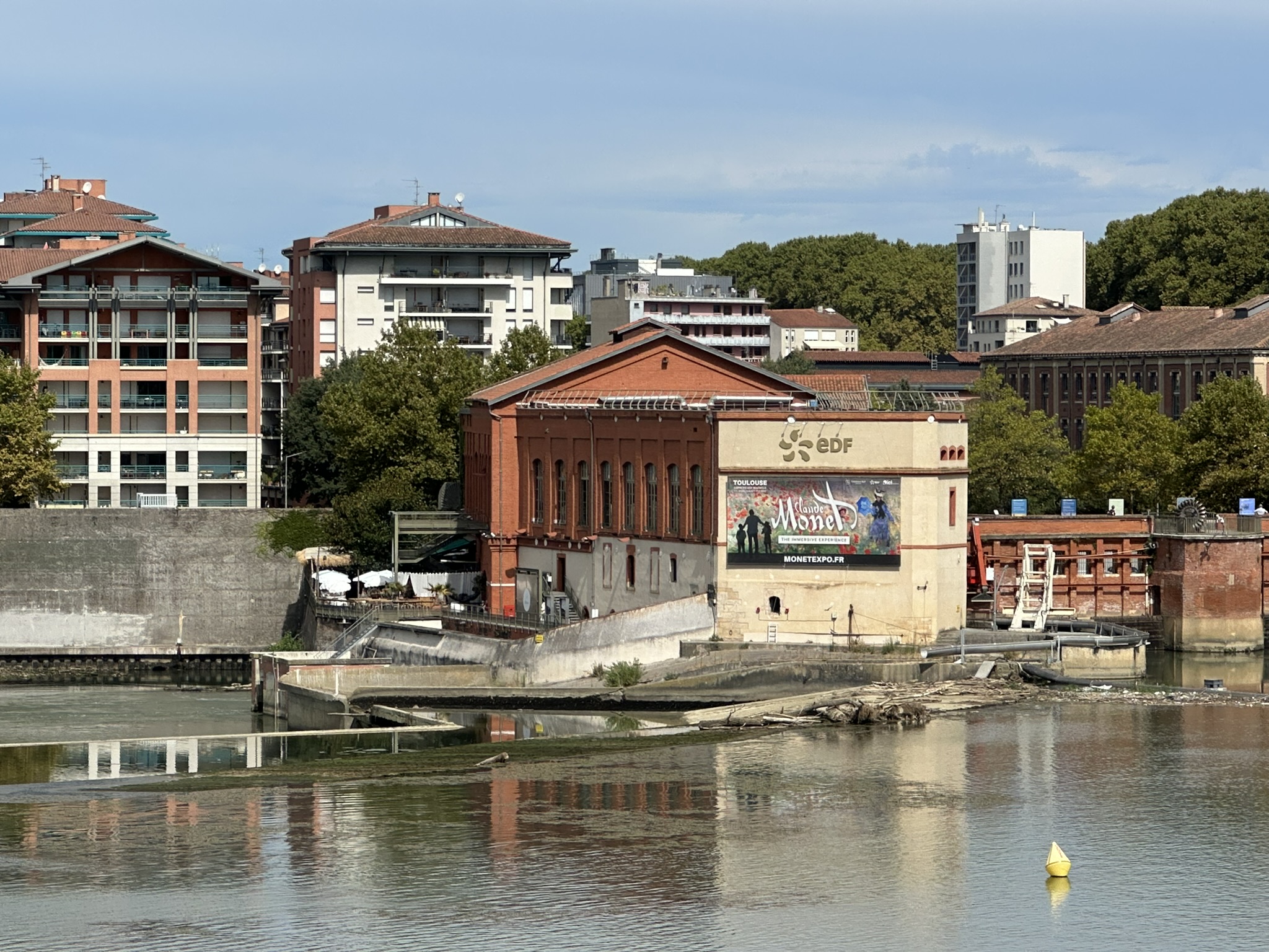 Toulouse has one of the oldest Universities in Europe, and we immediately noticed the college-town feel as we wandered around our neighborhood of two nights. Bars and cafes were teeming, even on a summer mid-week evening. We wandered past, and then into, the Espace EDF hydroelectric power station’s “immersive Monet exhibit”. Initially it was a bit confusing, with some history of Monet and a few canvases but we discovered soon why they billed it as “immersive”. Set to music, they brought some of the artist’s most famous periods and paintings to life with croaking frogs, chirping birds and visual effects of falling snow, wind and rain. It was perhaps 45 minutes long and was pretty cool.