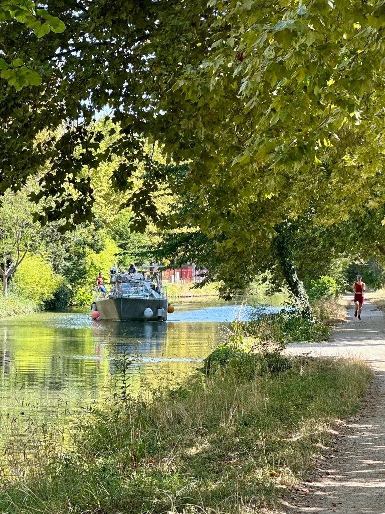 The Canal du Midi, which encircles the city, is a UNESCO heritage site with operating locks and houseboats, a bike and pedestrian trail and much of it is under a canopy of trees, which was helpful to stave off the mid-summer heat. At one end, adjacent to it, is a park with a Japanese garden at its heart. We probably walked close to 2/3 of the path, ringing around the city and it exposed us to the college, parks and the more working class and industrial areas of Toulouse. In fact, Airbus’ largest French factory is located in Toulouse.