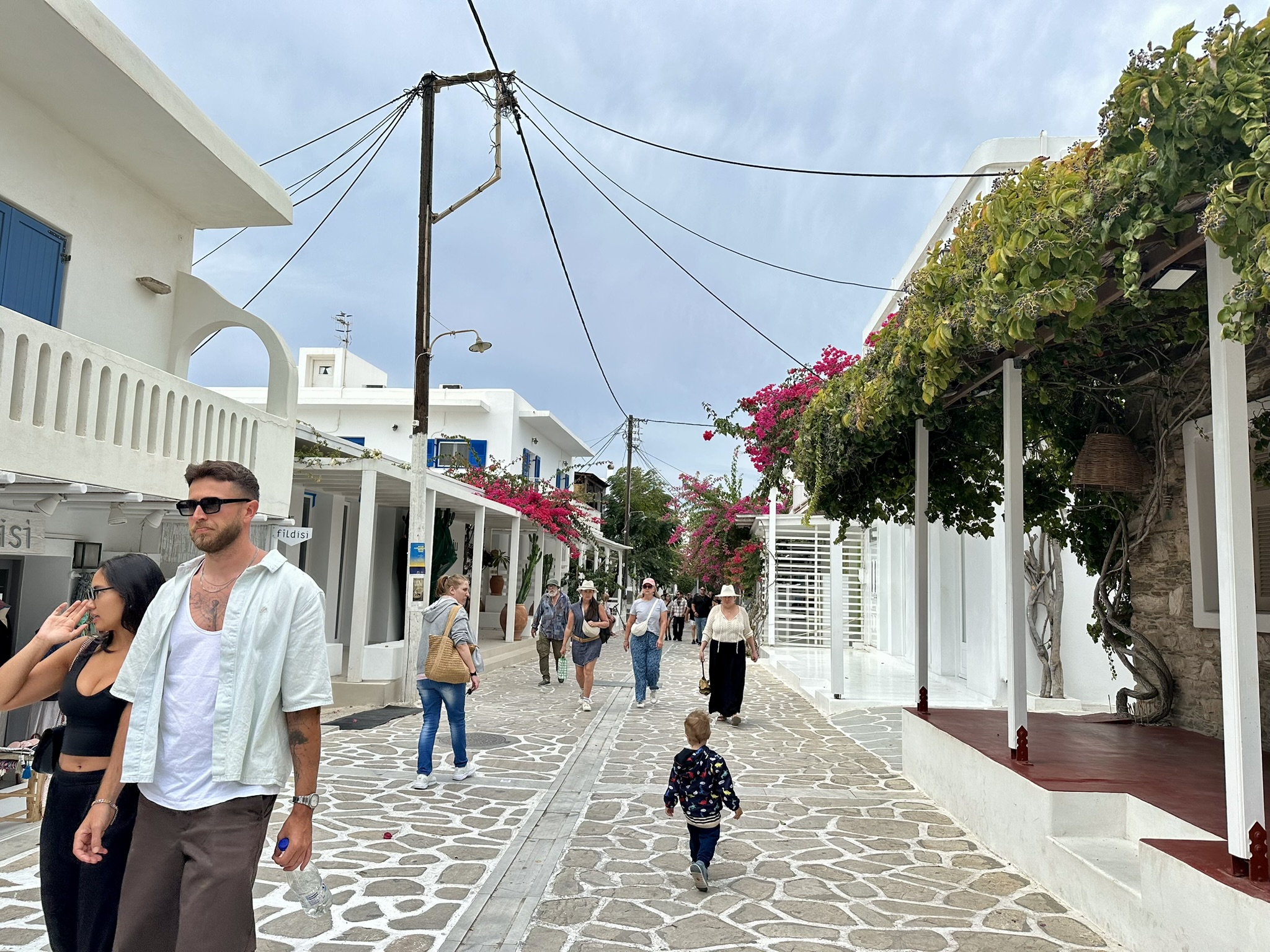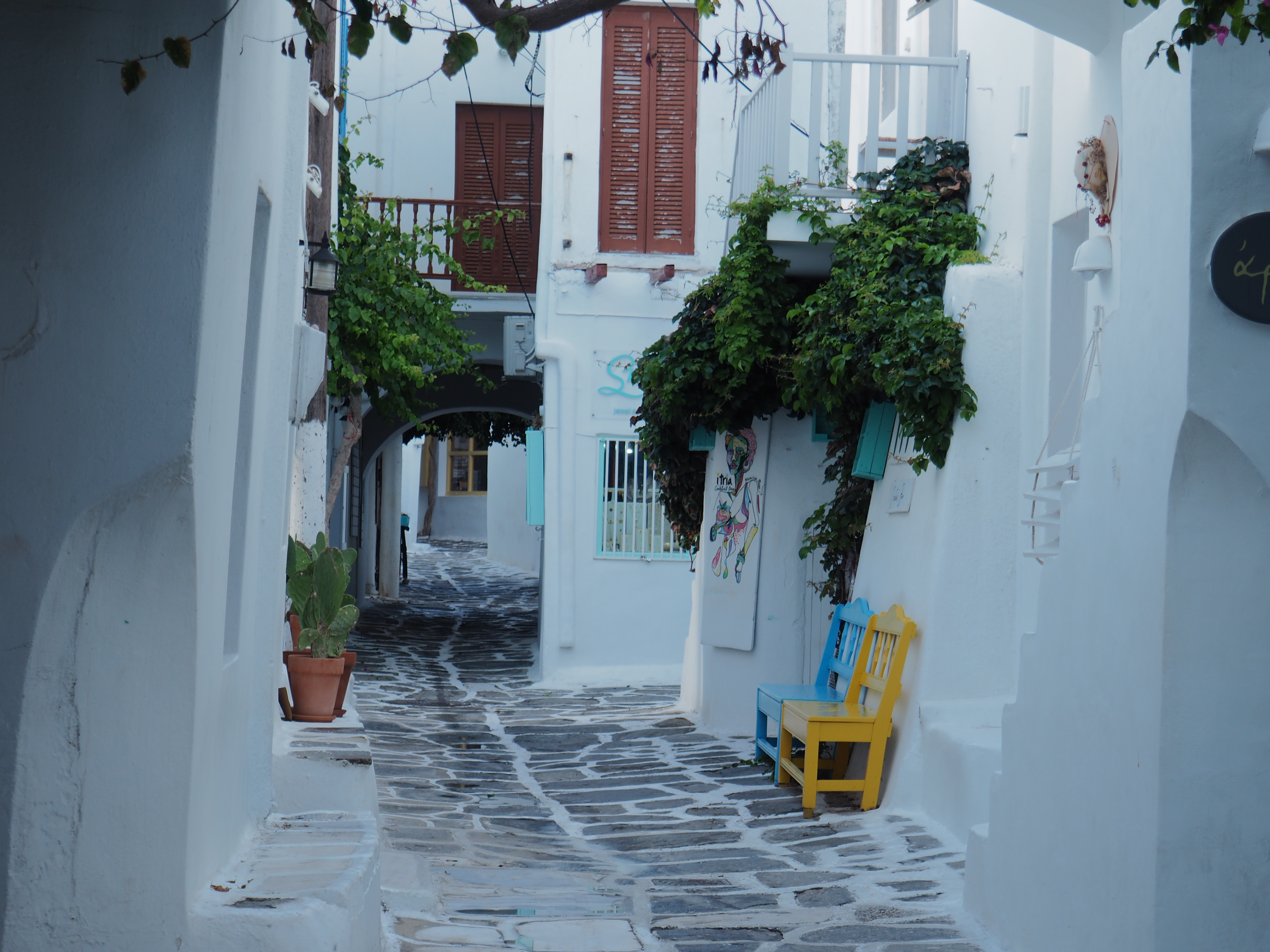 It has several beach front hotels along its main stretch of beach and its small old town has the stereotypical Cycladic white buildings and grey and white sidewalks with lots of boutique shops, bars, restaurants, a few hotels, hostels and lodging houses. It’s a chill place, with some energy, and caters to your relaxing and holiday making. Though we loved Naxos, the sometimes chaotic energy of our neighborhood in Naxos town (construction banging and drilling all day and a woman across the street who sounded like she was yelling at her husband even when she was just talking to him), the peace of Paros was perfect.