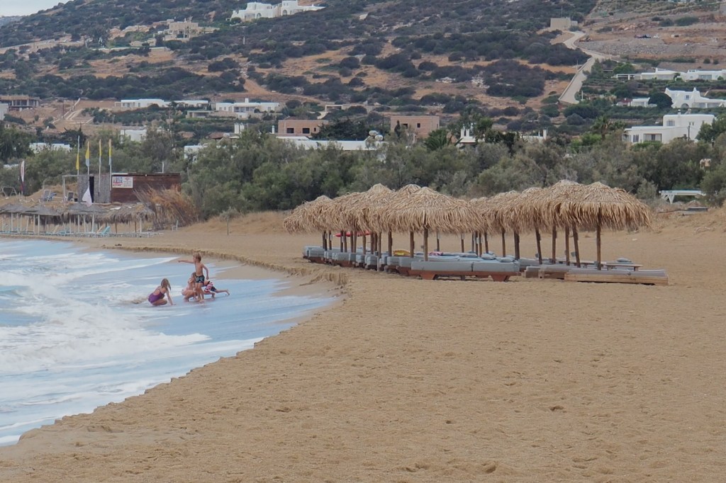Back on Paros. Back on Paros, we spent the next day walking on the Golden Beach at the island’s south end, where we had the beach to ourselves on a cloudy morning with occasional showers save for a few kids (isn’t this October? Shouldn’t you be in school? I guess I am an old man. Get off my lawn) screaming with joy as the waves rolled in over their heads.