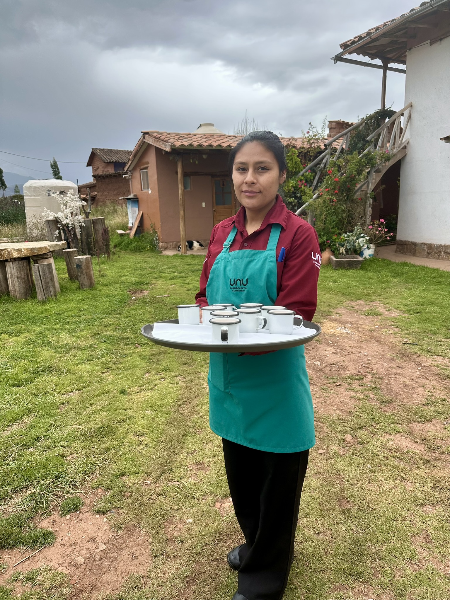 Lunch on the Plains. We drove through the Spanish colonial town of Maras and headed to lunch at the small UNU restaurant next to the magnificent high plains church at Tiobamba.